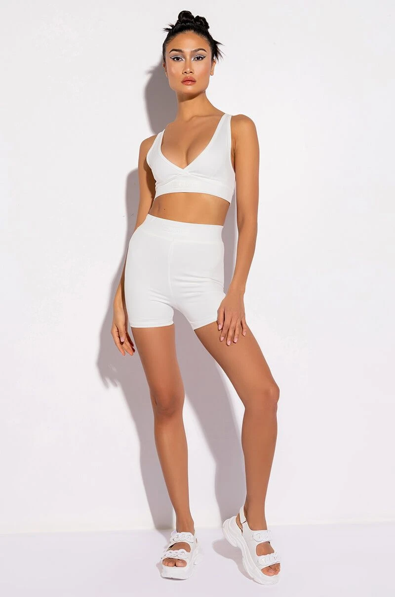 The AKIRA Label Basic Luxe White Biker Short features a sleek and smooth fabrication, a high rise elastic waistband, a rubber logo reading “Luxe,” and a bodycon fit. Pair this piece with the coordinating Basic Luxe White Bralette and some chunky sneakers to complete your look.