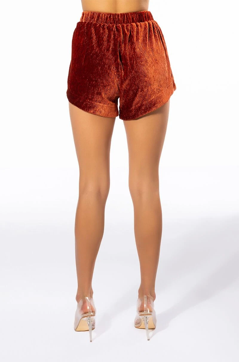 Talk flirty to me. The AKIRA Label Sweet Talk Shorts feature a textured velvet fabrication, a shirred elastic waistband, a high rise waistline, and a pull on fit. Complete your set with the matching AKIRA Label Sweet Talk Button Up for a cute and cozy ensemble.